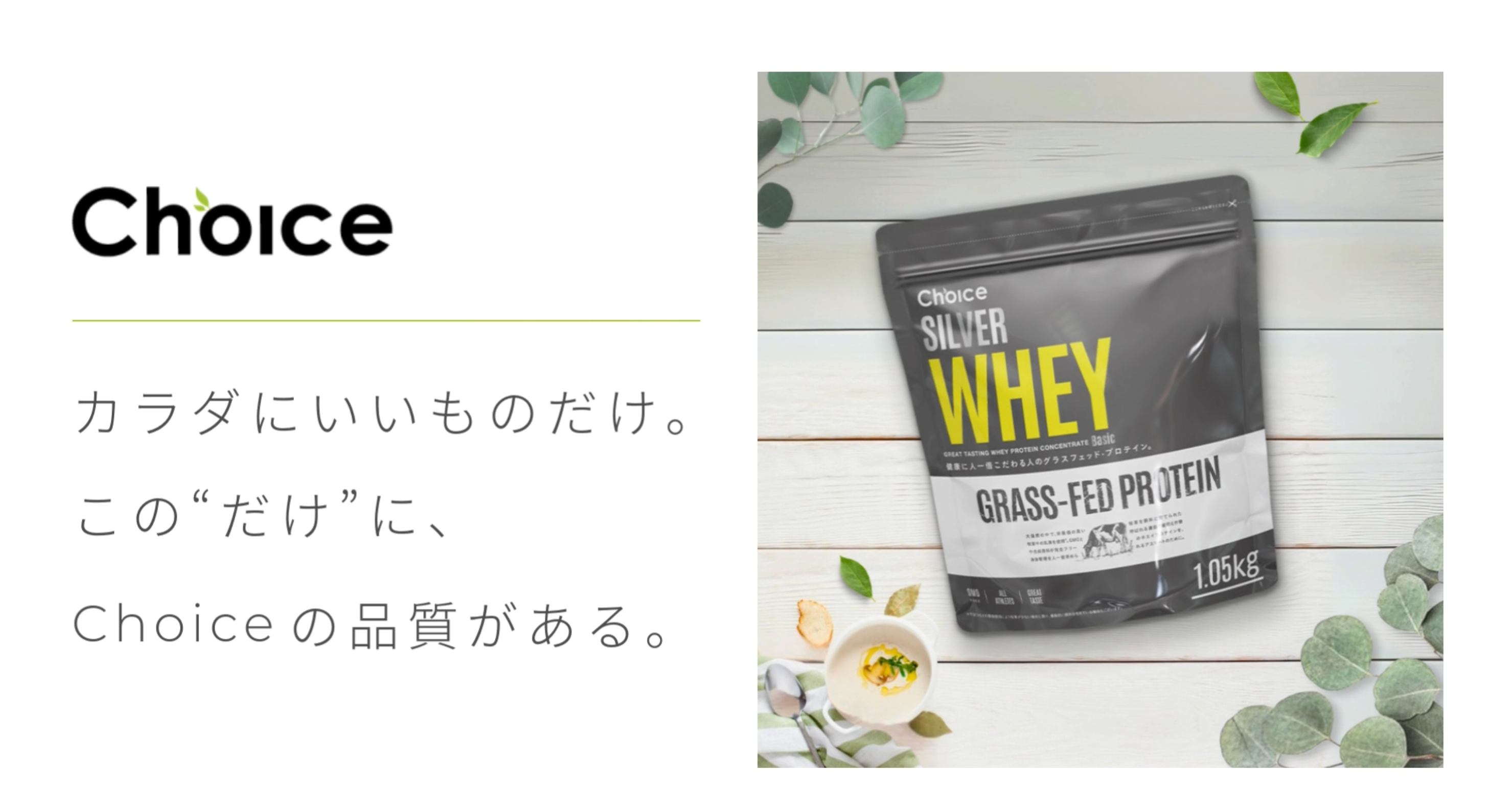原材料は、ニュージーランド産グラスフェッド(牧草飼育)牛由来のホエイプロテイン・コンセントレート(WPC)。一人でも多くの人に、確かな品質のグラスフェッドWPCを味わってもらいたいという想いから、できる限り価格を抑えた『シルバーホエイ』が誕生。品質を落とすことなく可能な限り価格を抑えるために、ニュージーランドのサプライヤーおよび日本の製造元へ粘り強い交渉を重ね、ついに『シルバーホエイ』をつくることができた。